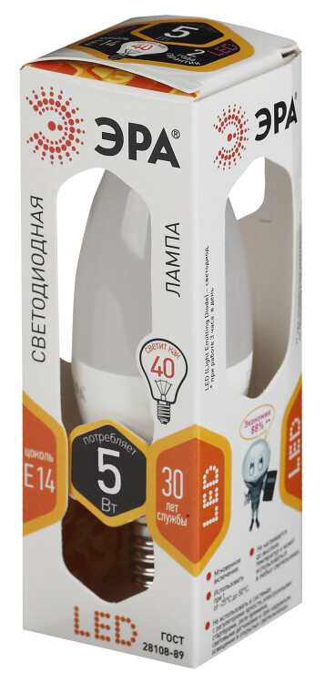 Бытовая светодиодная лампа ЭРА Серии Стандарт, создаёт яркое ровное освещение и экономит до 90% электроэнергии по сравнению с лампой накаливания с аналогичным световым потоком. Светит теплым светом с жёлтым оттенком - такая цветовая температура эффективна для отдыха и уютной атмосферы в доме. Используется в потолочных, настенных, настольных светильниках, в люстрах и бра. Мгновенно включается и не нагревается.