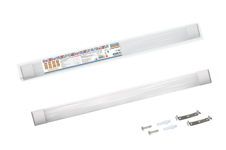 Материалы:Корпус - листовой металл.Рассеиватель из поликарбоната.Заглушки - пластик. Преимущества:Встроенный драйвер.Компактные размеры корпуса.Бюджетное решение.Равномерно светящаяся поверхность, без теней.Назначение:Для общего освещения помещений в общественных и административных зданиях. Конструкция:Светодиодная линейка расположена на основании светильника и закрыта матовым рассеивателем.Боковые крышки снимаются для крепления светильника. 0: