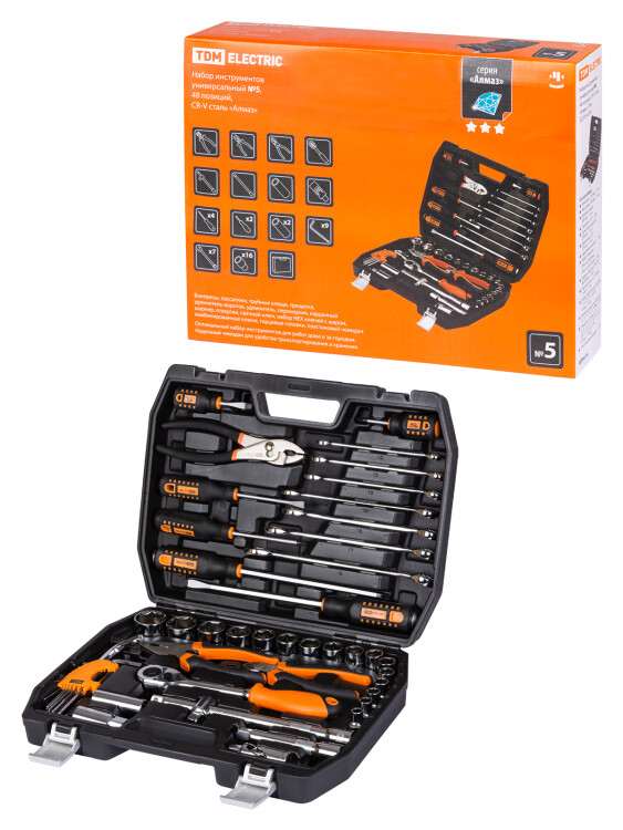 Материалы:Чемодан, рукоятки ПВХ, мягкая резина, алюминий.Металлические части состава инструментальная и хром-ванадиевая сталь. Преимущества:Качественная сталь.Оптимальное сочетание инструментов в набореУдобное хранение необходимых инструментовИнструменты в наборе выдерживают повышенные нагрузкиИнформативная красочная упаковка со штрихкодом наглядно представляет содержимое набораНазначение:Наборы предназначены для выполнения широкого круга работ при ремонте, монтаже, регулировке машин и различного оборудования. 0: Применение:Проверка наличия напряжения от 6 до 24 В.Определение наличия напряжения от 100 до 500 В в проводнике путем включения сигнальной лампы в устройстве.Регулирование аппартатуры и монтаж проводов, подключаемых к элеткрическим и электронным аппаратам.Монтаж и демонтаж крепежных элементов