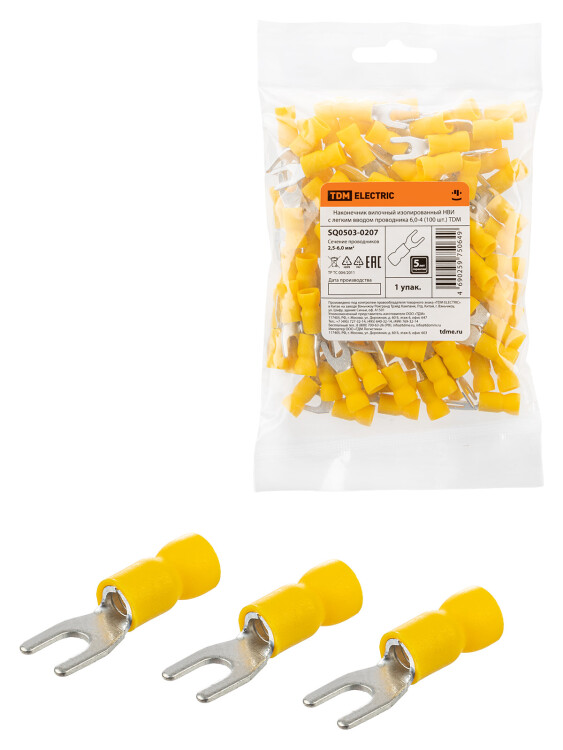 TDM Наконечник вилочный изолированный НВИ с легким вводом проводника 6,0-4 (100 шт.)