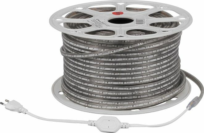 Лента светодиодная 220V FERON LS704, 60*SMD2835, 4,4W/m, IP65, (красный), в комплекте 2 сетевых шнура, 2 заглушки, 2 коннектора, 10 крепежей , Кратность резки мм 1000мм, раб.t -40°C...+40°C, бобина 100 метров*13мм*7 мм
