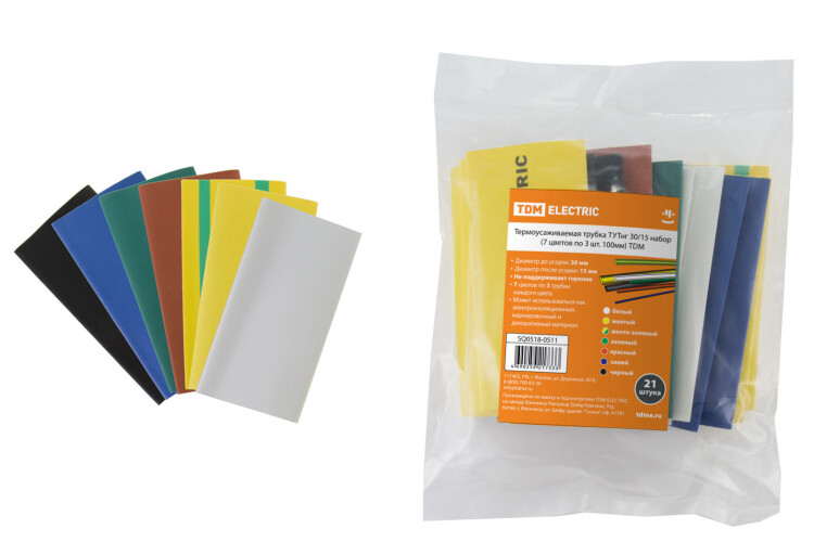 TDM Термоусаживаемая трубка ТУТнг 30/15 набор (7 цветов по 3 шт. 100мм).