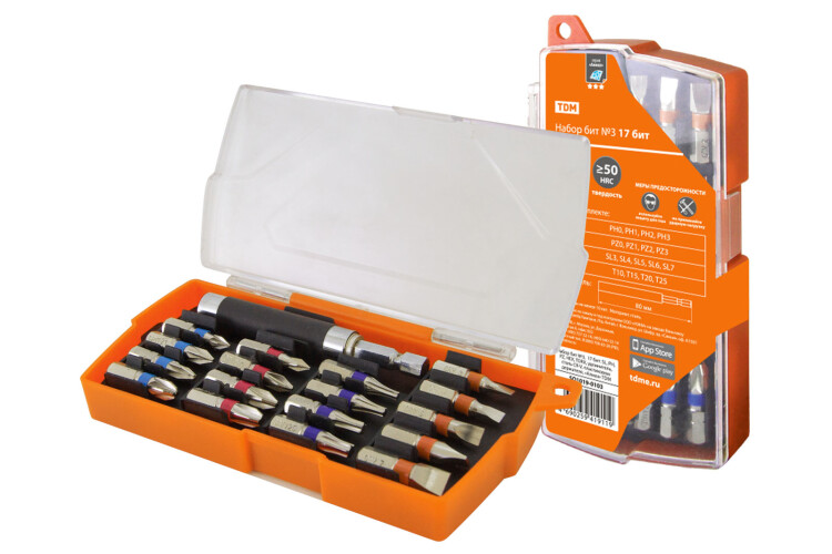 Материалы:Для набора 2 сталь марки S2. Для остальных наборов хром-ванадиевая сталь CR-V. Преимущества:Оптимальный подбор бит в наборе, как для домашнего, так и для профессионального использования. Количество бит в наборе в зависимости от артикула 6, 10, 17 и 66 штук.Удобное хранение.Назначение:Для монтажа различного типа шлицевых, торцевых, специальных элементов крепежа.Использование в качестве оснастки для дрелей-шуруповёртов. Упаковка:Индивидуальный пластиковый держатель, содержащий всю необходимую информацию об изделии и индивидуальный штрихкод EAN-13. 0: