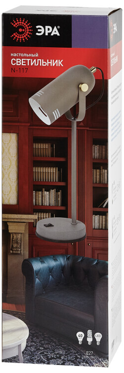 ЭРА наст.светильник N-117-Е27-40W-GY серый (12/48)