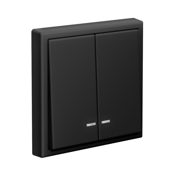 Механизм Systeme Electric серии ArtGallery в цвете карбон выключателя 2-клавишного c подсветкой подходит для сетей 250 В, на ток 10 А.