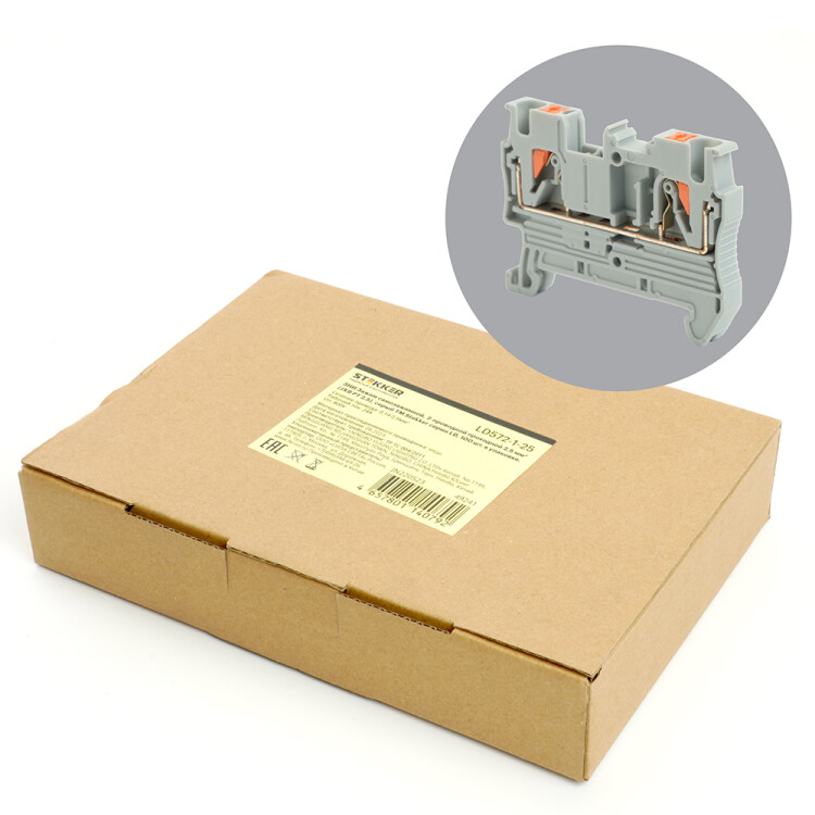 LD572-1-25 ЗНИ Зажим самозажимной, 2-проводной проходной 2,5 мм? (JXB PT 2,5), серый