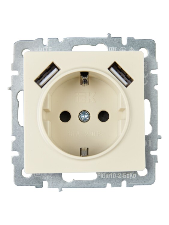 IEK BRITE BASE Бежевый Розетка с з/к/ш 16А с USB A+A 3,1А РЮш10-2-БрКр