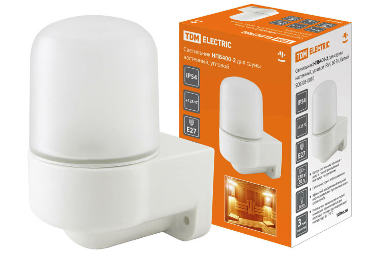 TDM Белый Светильник НПБ400-2 для сауны настенный, угловой, IP54, 60Вт