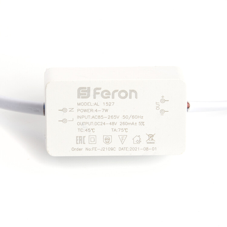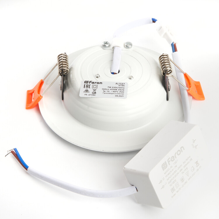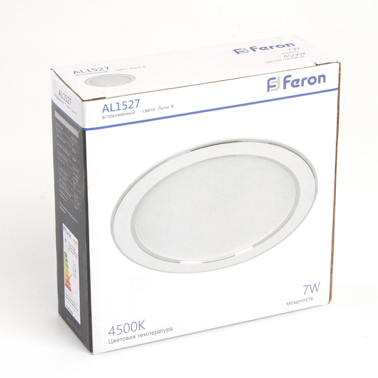 Светильник встраиваемый светодиодный, декоративный (ДВО) FERON AL1527, 7W 4500К (белый), 230V, 560Lm, IP20, угол рассеивания 120°, цвет белый, корпус алюминий, рассеиватель матовый акриловый полимер, 105*105*30 мм, монтажн.отв. 75*75 мм.
