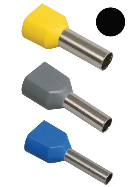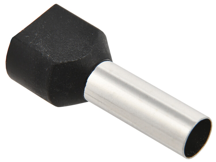 Наконечни к штыревой втулочный предназаначен для оконцевания опрессовкой проводов с медными жилами в электрических цепях переменного и постоянного тока. Рассчитан для монтажа и подключения двух проводников.