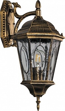 Светильник садово-парковый, серии «Рим», (НБУ) FERON PL151 60W, E27, 230V, IP44, цвет черное золото, 6-и гранник, на стену вниз, 240*270*500мм