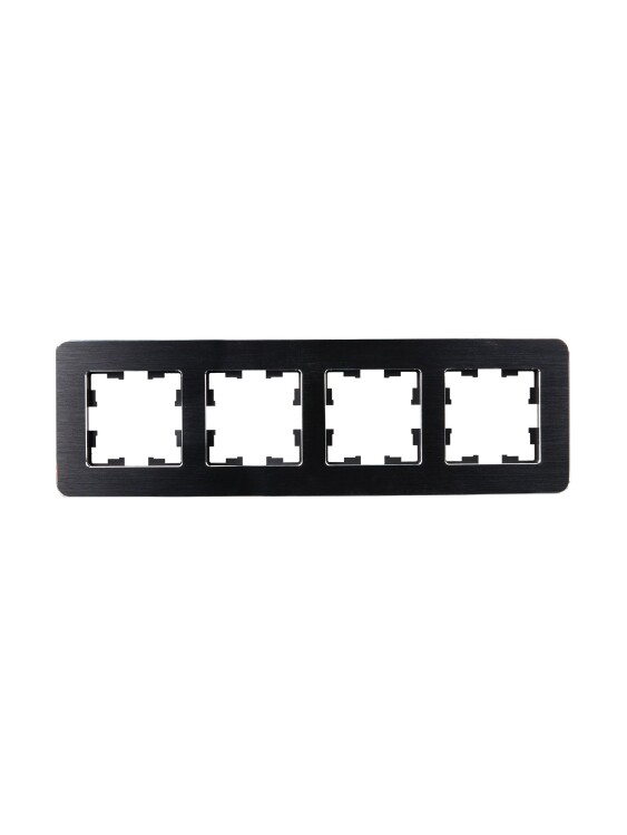 IEK BRITE DECOR Черный/алюм металл. скругл.угол Рамка 4-м РУ-4-1-Бр RE AL