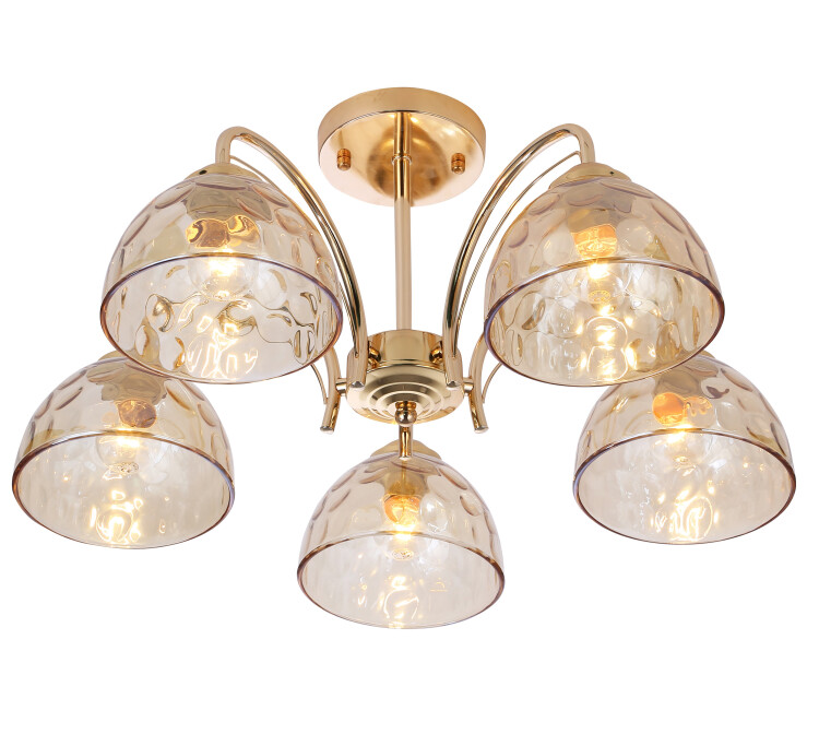Люстры потолочные золотого цвета с дизайнерскими стеклянными плафонами – Rivoli Terri: под 5 ламп (арт. 9172-305), под 3 лампы (арт. 9172-303). Коллекцию итальянского бренда дополняет светильник-бра – арт. 9172-401. Декоративные «фишки» коллекции – рельефные выдувные плафоны из тонированного стекла, насыщенный золотой цвет окрашивания корпуса, лаконичность корпуса и рожков. Люстра Rivoli Terri на штанге под 5 ламп подходит в качестве элегантной люстры в гостиную или люстры в спальню. С помощью такой эстетичной нестандартной люстры легко создать запоминающийся интерьер. Оптимальное количество плафонов (5 шт) и достаточно большая освещаемая площадь люстры (до 15 м2) позволяет применять 5-рожковую люстру Rivoli Terri в качестве основной люстры в комнате.