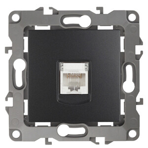 Розетка интернет RJ45 серии Эра 12 скрытой установки механизм цвет антрацит 12-3107-05. Сделана из поликарбоната. Монтаж в подрозетник производится и на лапки, и на винты. Рамки приобретаются отдельно. Рамки Эра 12: 1 пост 12-5001-хх, 2 поста 12-5002-хх, 3 поста 12-5003-хх, 4 поста 12-5004-хх, 5 постов 12-5005-хх. Рамки Эра 12 Сатин: 1 пост 12-5101-хх, 2 поста 12-5102-хх, 3 поста 12-5103-хх, 4 поста 12-5104-хх, 5 постов - 12-5105-хх