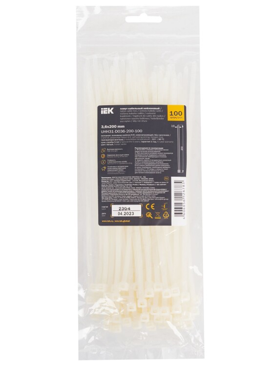 Хомуты кабельные нейлоновые предназначены для увязки в пучок и монтажа кабелей и проводников.Изготовлены из высококачественного сырья со специальными комплексными добавками. Новая формула материала хомутов Хкн IEK гарантирует сохранение прочности и эластичности при монтаже, эксплуатации, транспортировке и хранении. Продукция соответствует требованиям ГОСТ Р МЭК 62275-2015.