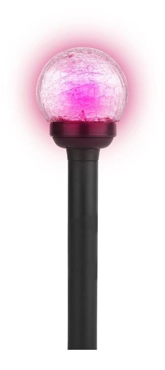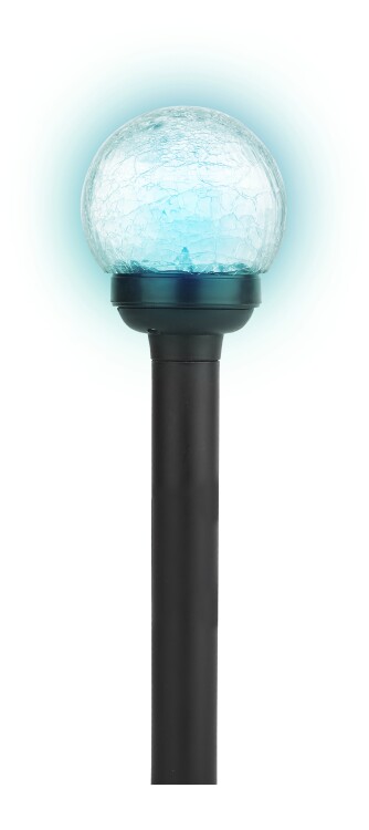 Светильник-втыкашка Кракле, в ПРОМОБОКСЕ. Ди аметр стеклянного шарика 5,5 см. Основание - пластик. RGB светодиод. Поставляется в промоупаковке по 12 шт. Обращаем Ваше внимание, что перед использованием фигурки её необходимо включить и зарядить. Светильник заряжается в течение всего светового дня.