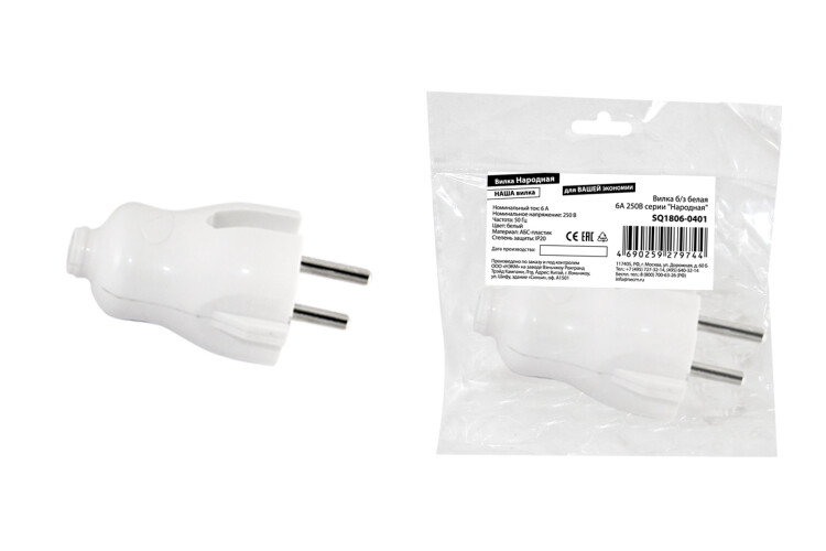 TDM Вилка б/з белая 6А 250В серии "Народная"