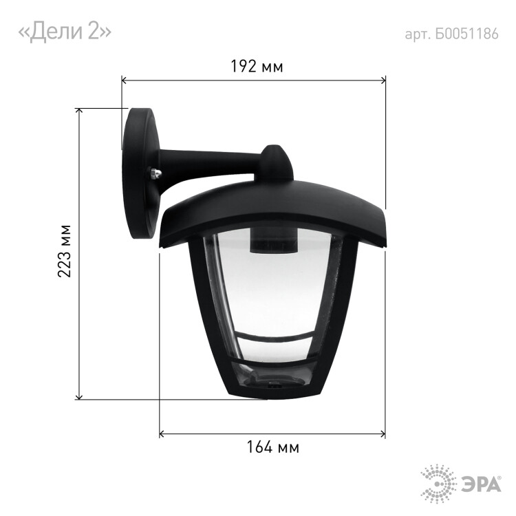 ЭРА Светильник садово-парковый 4гран черный настенный вниз E27 IP44(У1) НБУ 07-40-002 «Дели 2» (8/48)