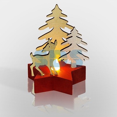Деревянная фигурка с подсветкой «Олененок в лесу» 9?8?10 см поможет эффектно украсить интерьер, преобразив привычную обстановку. Изделие не требует подключения к стационарной розетке, поскольку питается от 1 батарейки типа CR2032. Красивые фигурки елей и олененка мягко подсвечиваются одним диодом. Светодиод экономичен, долговечен и безопасен: не нагревается, не выделяет вредных веществ и практически всю получаемую энергию превращает в яркий свет. Древесина с аутентичной фактурой придется по вкусу любителям экологичных украшений.