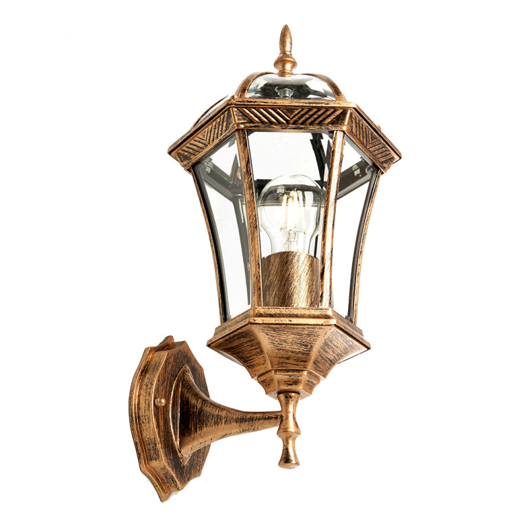 Светильник садово-парковый, серии «Неаполь», (НБУ) FERON PL621 60W, E27, 230V, IP44, цвет черное золото, на стену вверх, 225*205*540мм