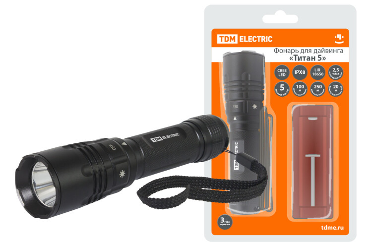 Назначение:br/Для освещения объектов под водой, а также в качестве резервного фонаря при погружениях (Титан 5 и Титан 6)В качестве источника дополнительного освещения при проведении поисковых работ в экстремальных условиях, активного спорта, отдыха и проведения ремонтных работ.br/Преимущества:br/ Водонепроницаемость до глубины 100 метров (Титан 5 и Титан 6) Пылевлагозащищенный противоударный корпусМощные экономичные светодиоды (3600 лм, 2000 лм,1000 лм, 400 лм) в качестве источника света. Возможность фокусировки лучаЛитий-ионный аккумулятор типоразмера 18650 в комплекте (кроме Титан 3)br/Материалы:br/Анодированный алюминийbr/