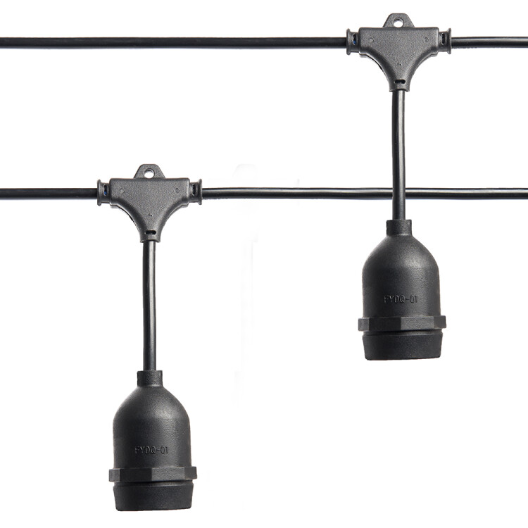 Гирлянда "Белт-лайт" FERON CL50-13-1, 10м+3м сетевой шнур, цвет черный, патрон E27*20, шаг 50см, 230ВV/50Гц, 8A, IP65, max 40W, сечение 2*0,5мм², материал: каучук,медь,ПВХ,латунь