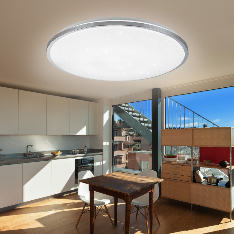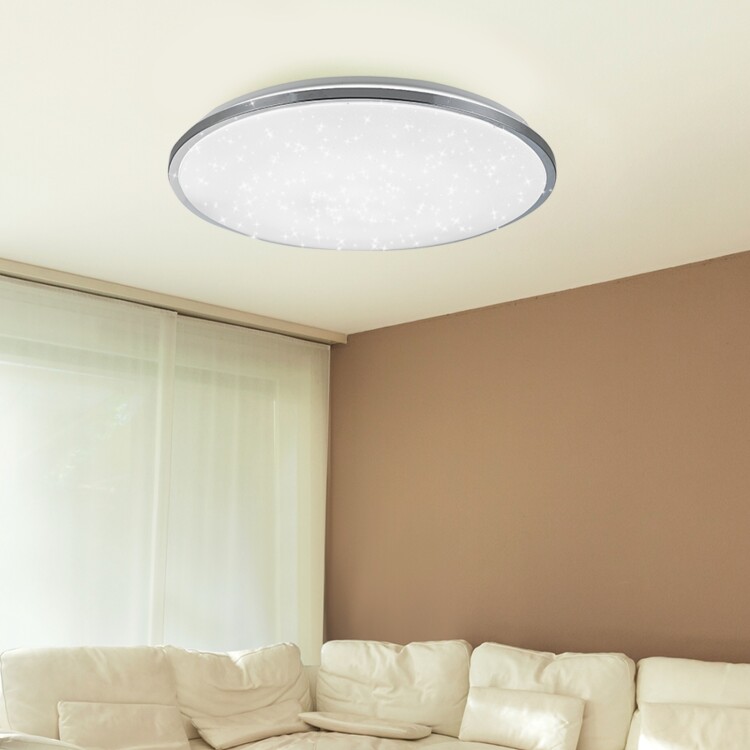 Потолочный светильник "Chrome" с эффектом звездного неба от компании ЭРА лучшее решение для оформления пространства. Люстра имеет средние внешние параметры 490*66 мм, что позволит ей органично вписаться в любое убранство.Главной особенностью LED люстры является возможность управления с помощью пульта. Вы можете устанавливать диапазон цветовой температуры индивидуально от 3000 до 6500 К.Классическое матовое оформление плафона гармонирует с плоским круглым корпусом. Блестящая отделка по окружности придает модели загадочности и делает похожей на неопознанный летающий объект. Такой электросветильник лучше всего подойдет для оформления освещения в гостиной, спальне или детской.Мощность 70 Вт и срок службы до 50 000 часов позволят эксплуатировать светодиодную люстру в течение длительного времени. Покупайте потолочную люстру SPB-6 "Chrome" - украшайте свой дом.