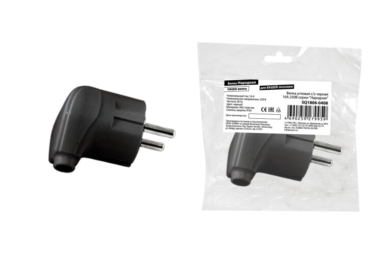 TDM Вилка угловая с/з черная 16А 250В серии "Народная"