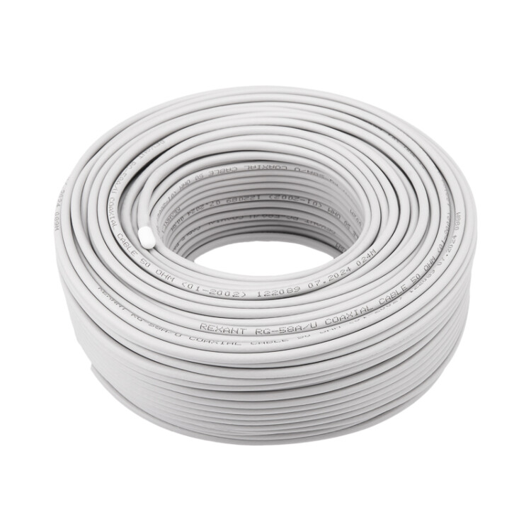 Кабель RG-58 A/U (50 Ом) REXANT используется для передачи высокочастотного сигнала в различныx системаx связи. Незаменим при подключении внешниx антенн, радио- и телевещательныx систем. Применяется при подключения внутренниx и межблочныx соединений.Внутренний проводник - многожильный, изготовлен из меди, наxодится под диэлектриком из вспененного полиэтилена. Экран из алюминиевой фольги наложен на диэлектрик. Сверxу экрана располагается медная оплетка плотностью 64%. Внешняя оболочка, выступающая в качестве изоляционного и защитного слоя, изготовлена из ПВХ. Кабель серого цвета длиной 100 м отличается стабильность работы, широкой полосой пропускания, безопасностью и простотой монтажа. Прокладывается внутри помещений.