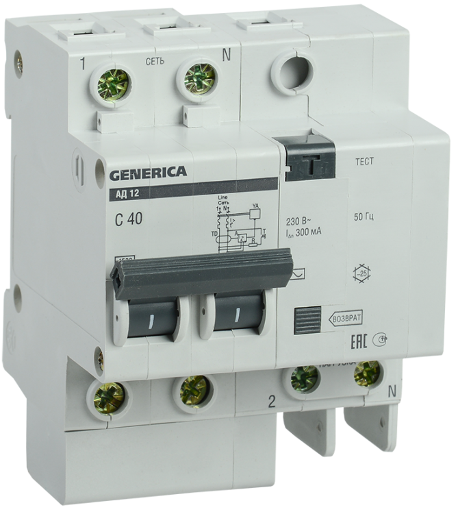 – в исполнении с уставкой срабатывания 300 мА – защиту от пожара из-за возгорания изоляции токоведущих частей;