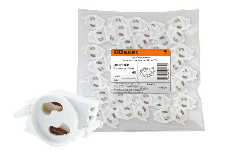 Применение:Предназначены для зажигания люминесцентных ламп, питающихся от сети переменного тока частотой 50 Гц, с электромагнитными балластамиСтартеродержатели предназначены для надежной фиксации стартера Материалы:Материал контактов стартеров в синем корпусе медьМатериал контактов стартеров в белом корпусе алюминийКорпус стартеродержателей изготовлен из поликарбонатаМатериал контактной группы стартеродежателей латуньПреимущества:Стартеры обеспечивают быстрое зажигание лампыПростата и удобство установки и замены стартера в светильникеНа каждый стартер нанесен индивидуальный штрих-кодГрупповая упаковка стартеров 25 шт. коробка в фирменном стиле TDM ELECTRICСтартеродержатели расфасованы по 100 шт. в пакеты с фирменным стикером TDM ELECTRIC 0: Применение:Предназначены для надежной фиксации и контакта люминесцентных ламп Т5, Т8Клипсы используются для крепления люминесцентных ламп Т8, Т5 на винт М4