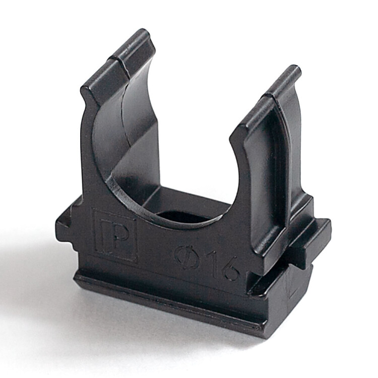 Предназначена для крепления гладких труб ПВХ или гофрированных труб одного диаметра к поверхности стен, потолков, полов или перегородок. Для монтажа предусмотрено технологическое отверстие под дюбель или саморез. Для удобства блочного монтажа состыковываются друг с другом с помощью специальных фиксаторов типа «ласточкин хвост».