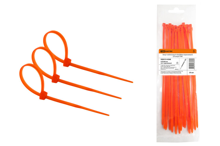 TDM Хомут нейлоновый 4.8х300мм (оранжевый) (25 штук).
