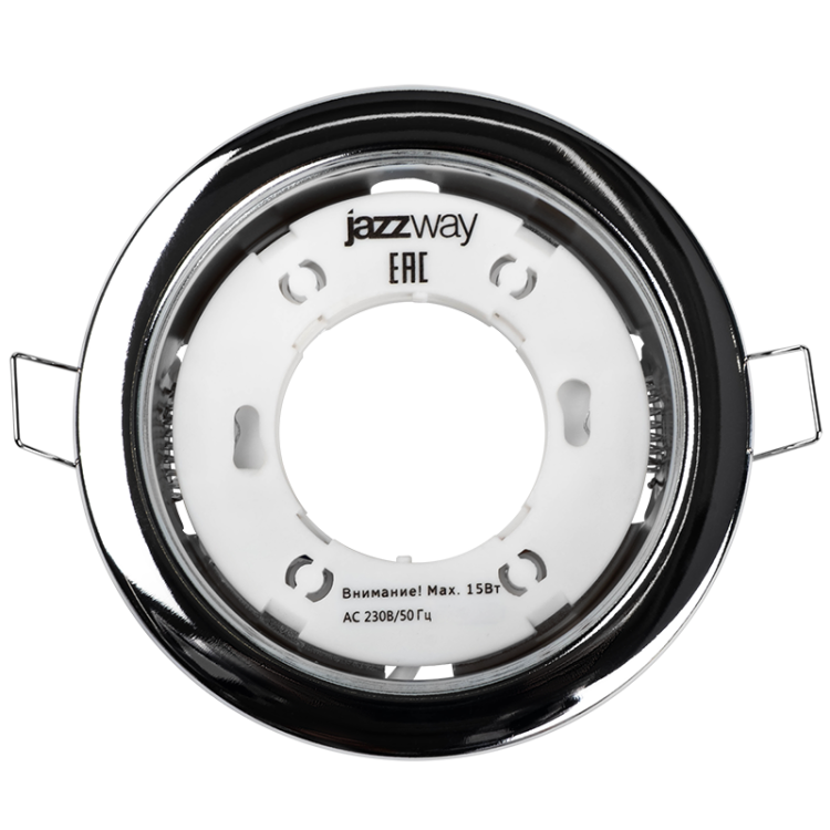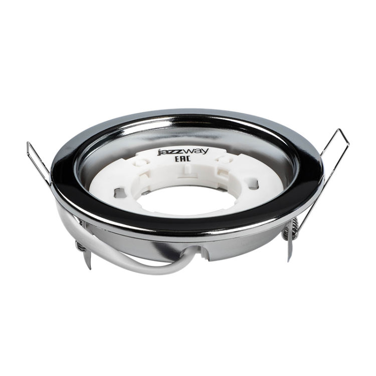 Установка. Светильник PGX53 идеальное решение для натяжных и подвесных потолков, а также для установки в местах с небольшим межпотолочным пространством, где нежелательно большое выделение тепла лампой. Конструкция. Пружинное крепление. Патрон GX53. Минимальная необходимая для монтажа высота межпотолочного пространства 39 мм. Защита от прожигов в натяжных и пластиковых потолках. Отсутствие заднего света. Материал патрона: пластик. Рекомендуемые источники света: светодиодные лампы:PLED GX53 и PLED-ECO-GX53 JAZZWAY. Частота: 50 Гц.
