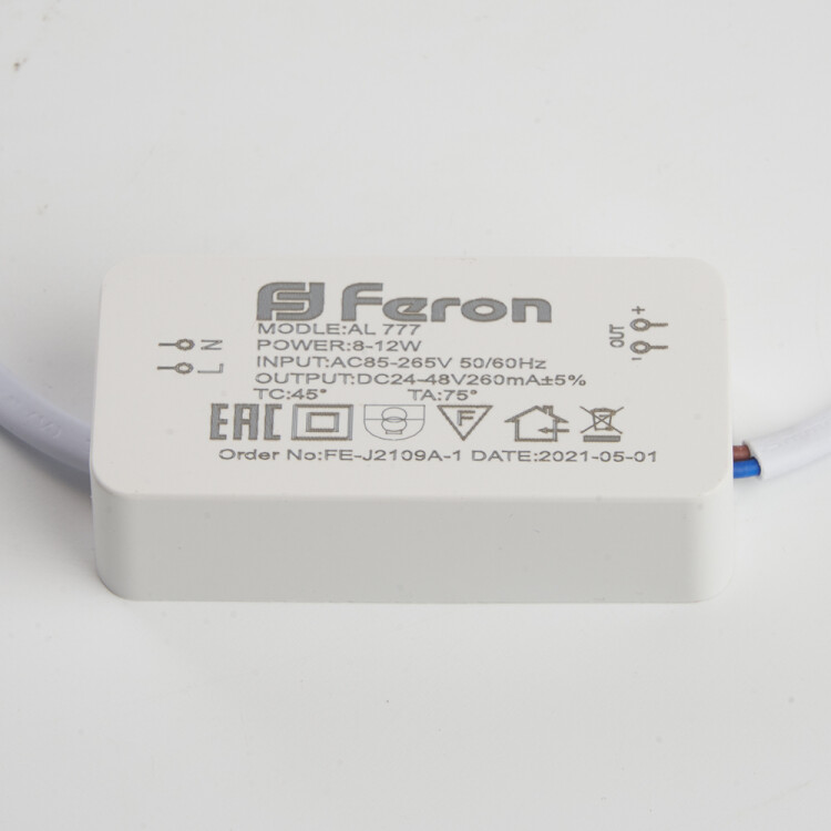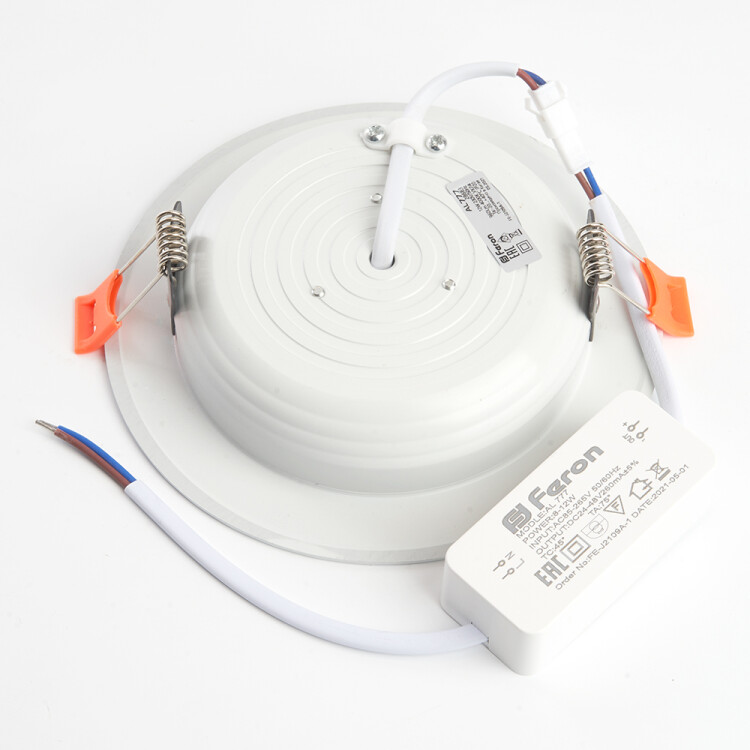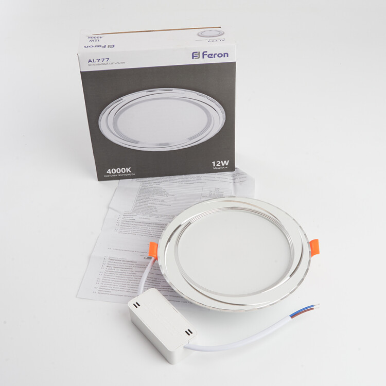 Светильник встраиваемый светодиодный, декоративный (ДВО) FERON AL777, 12W 4000К (белый), 230V, 960Lm, IP20, цвет белый, корпус алюминий, рассеиватель матовый акриловый полимер, 14514530 мм, монтажн.отв. 105 мм.