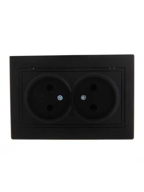 Lezard Мира Розетка двойная б/з керамика чёрный бархат со вставкой (10шт/120 шт)