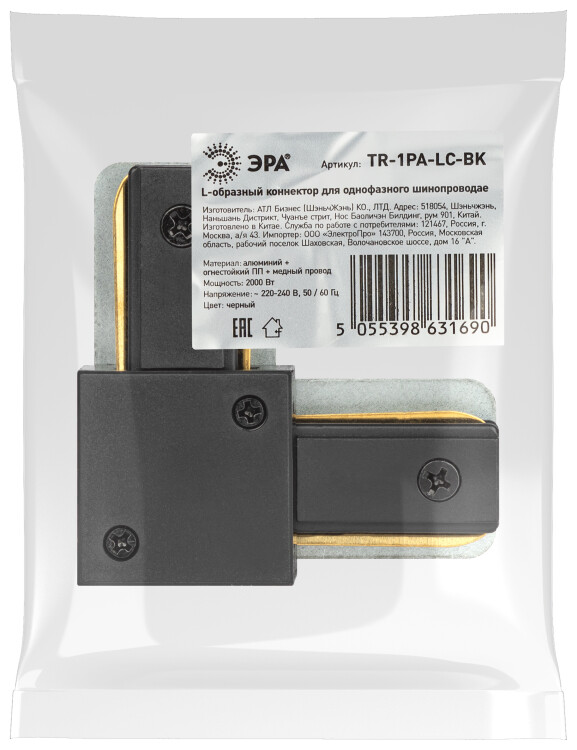 ЭРА Коннектор питания TR-1PA-LС BK для однофазного шинопровода угловой черный