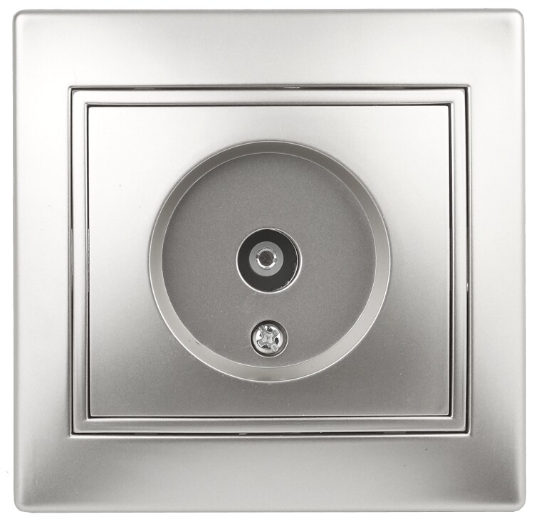 Розетка одиночная серии Intro Plano скрытой установки цвет алюминий 1-301-03. Номинальные характеристики . Розетка выпо лнена из термопласта, укомплектована одноместной рамкой. Для установки 2-х и более устройств в несколько подрозетников в ряд дополнительно используются многоместные рамки: 2-х постовая - 1-502-хх, 3-х постовая 1-503-хх, 4-х постовая - 1-504-хх (где хх - цветовой код: 01 - белый, 02 - слоновая кость, 03 - алюминий, 04 - шампань, 05 - антрацит, 10 - венге, 11 - сосна).