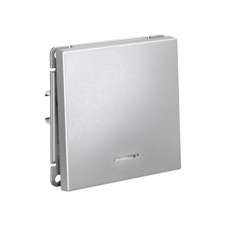 Механизм Systeme Electric серии ArtGallery в цвете алюминий выключателя 1-клавишного с подсветкой подходит для сетей 250 В, на ток 10 А.