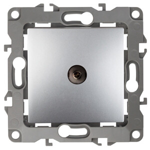 Розетка телевизионная одиночная серии Эра 12 скрытой установки механизм цвет алюминий 12-3101-03. Сделана из поликарбоната. Монтаж в подрозетник производится и на лапки, и на винты. Рамки приобретаются отдельно. Рамки Эра 12: 1 пост 12-5001-хх, 2 поста 12-5002-хх, 3 поста 12-5003-хх, 4 поста 12-5004-хх, 5 постов 12-5005-хх. Рамки Эра 12 Сатин: 1 пост 12-5101-хх, 2 поста 12-5102-хх, 3 поста 12-5103-хх, 4 поста 12-5104-хх, 5 постов - 12-5105-хх