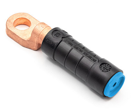 Предназначен для оконцевания провода СИП при выполнении контактного присоединения к электроустановкам. Наконечник фиксируется на токоведущей шине или на вводах электрических устройств. Наконечник предназначен для медных шин. Внутренняя часть заполнена смазкой, благодаря чему обеспечивается герметичность. Клеммы наконечников CPTAU специально адаптированы под российское электрооборудование. Соединение осуществляется методом опрессовки инструментом HT 50, R 22. Используемая матрица - Е 140. Механическая прочность заделки провода составляет 60% прочности провода. Изоляция испытана напряжением 6 кВ в воде. Размер наконечников, соответствующий сечению провода, определяется по цветовой маркировке. Наконечник устойчив к ультрафиолету, перепадам температур (от -60°С до +50°С), коррозии и агрессивным атмосферным воздействиям.