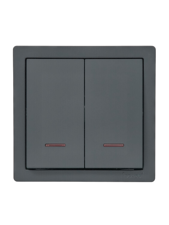 LETO Выключатель двойной с подсветкой графит (10шт/120шт)