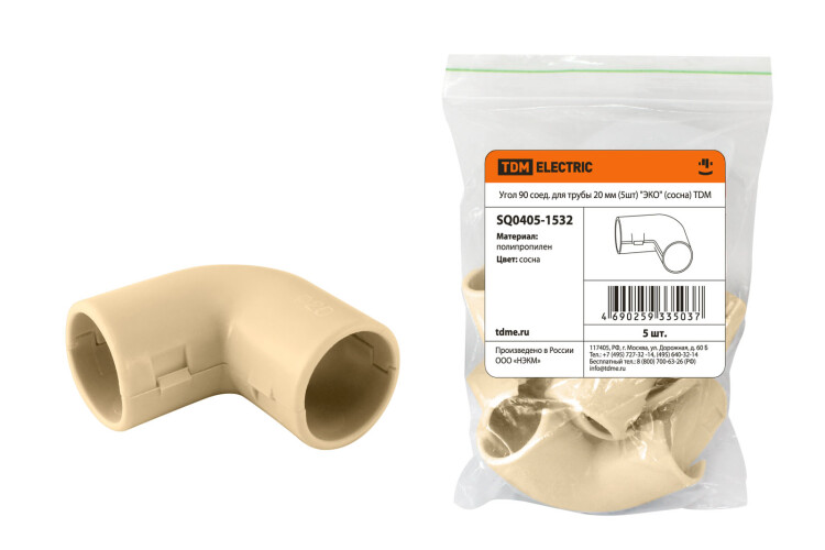 TDM Угол 90 соед. для трубы 20 мм (5шт) "ЭКО" (сосна)
