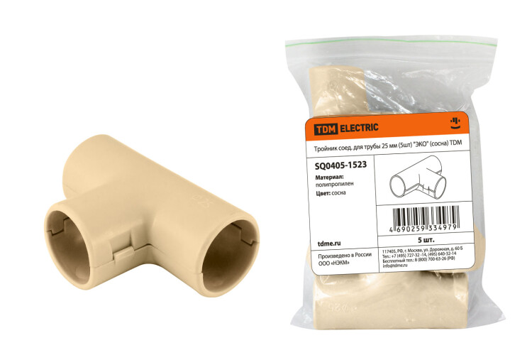 TDM Тройник соед. для трубы 25 мм (5шт) "ЭКО" (сосна)
