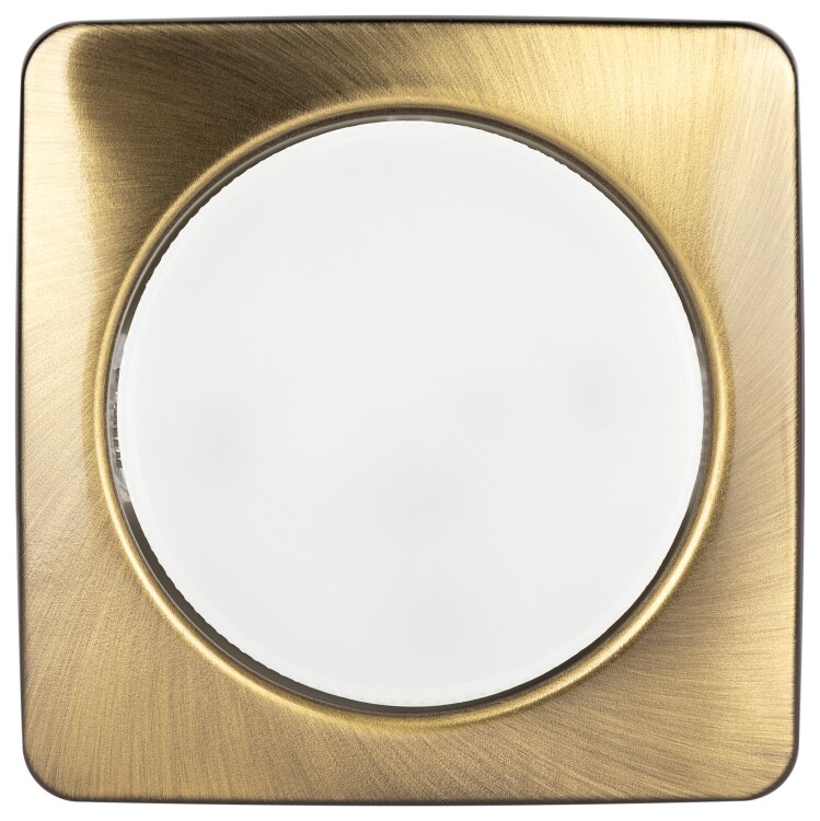 Корпус выполнен из алюминия и стекла. Размеры: внешний – 107 мм, монтажный – 90 мм. Подходит лампа GX53 мощностью до 15 Вт, термокольцо в комплекте. Доступен монтаж на любые потолки, а также на стены.