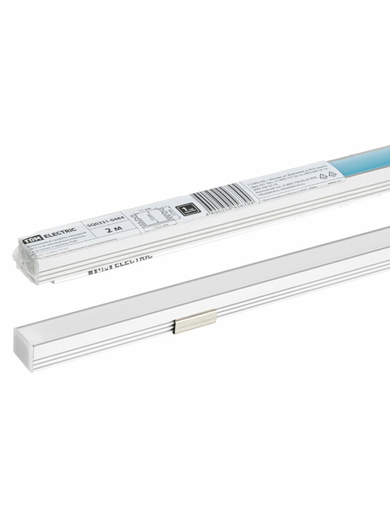 TDM Алюминиевый профиль накладной 1612 (2 м), матовый рассеиватель, 2 заглушки, 4 крепежа.