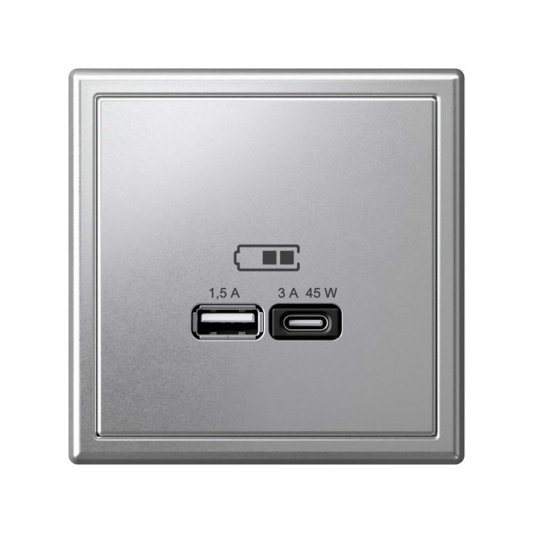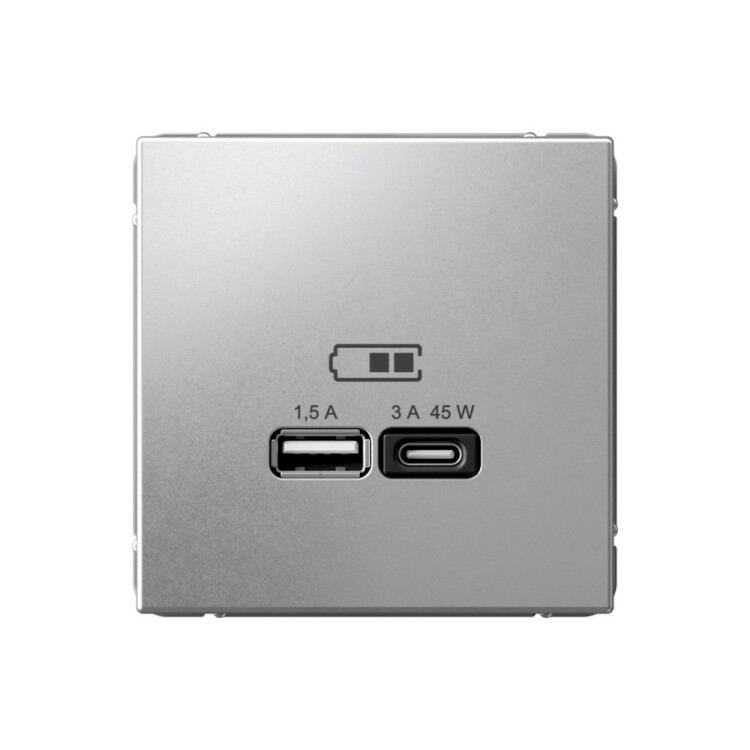 Розетка Systeme Electric серии ArtGallery в цвете алюминий двойная USB с разъемами типа A+C высокоскоростная.