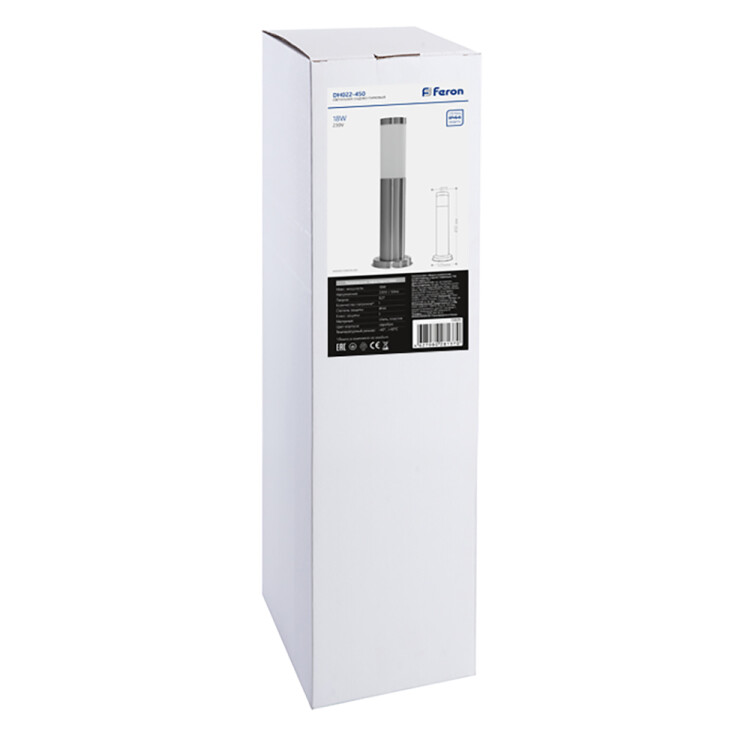 Светильник садово-парковый, серии «Техно», (НТУ) FERON DH022-450 18W, E27, 230V, IP44, цвет сталь, столб, 75*75*450мм