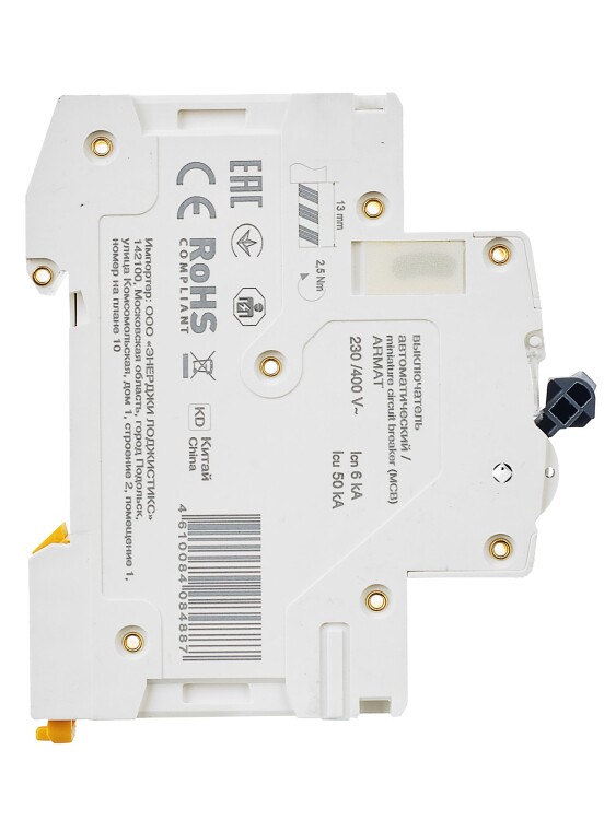 Автоматические выключатели ARMAT серии M06N предназначены для защиты цепей от перегрузки и короткого замыкания. Модельный ряд включает в себя устройства с характеристиками срабатывания B, C, D и номинальными токами от 0,5 до 63 А. Номинальная отключающая способность автоматических выключателей ARMAT серии M06N составляет 6 кА. Предельная отключающая способность варьируется в зависимости от номинала от 10 до 50 кА.