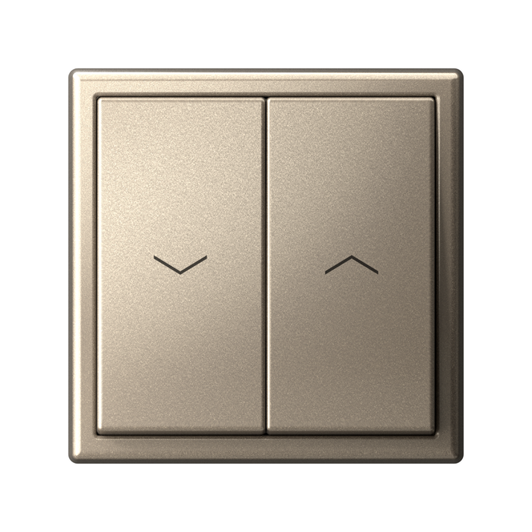 Механизм выключателя жалюзи 2-клавишного Systeme Electric серии ArtGallery в цвете шампань подходит для сетей 250 В, на ток 10 А.